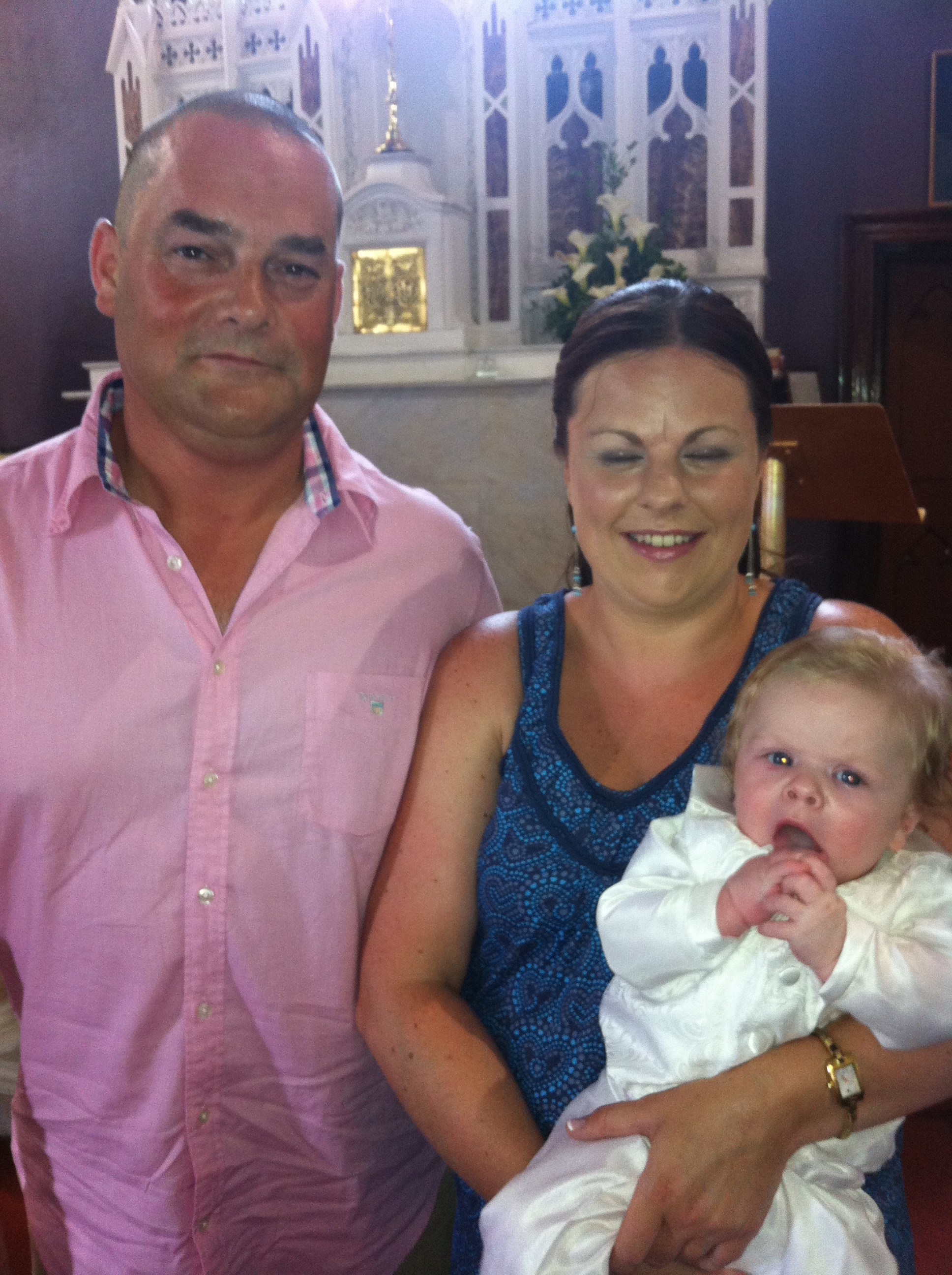 Oran Liam Keane with his parents Marguerite and Aidan on his baptism day.