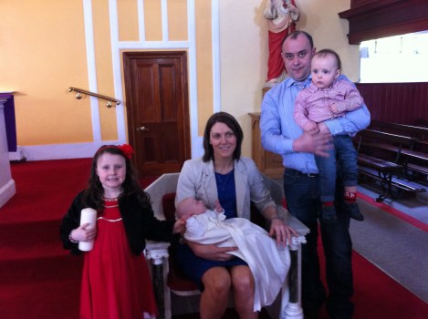 Next Image IMG_2312 Dáire with his parents Agnes and Gerard, his sister Michelle and brother Stephen on his baptism day.