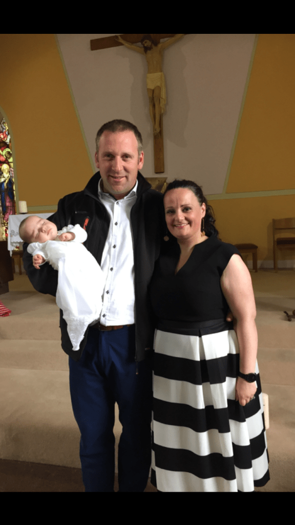 Previous Image Next Image IMG_3942 Olivia Mary Meaney with her parents, Bernie and Alan, on her baptism day.