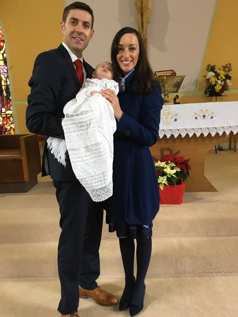 Iarla Shannon ÓCeallaigh with his parents Úna and and Barry on his baptism day.