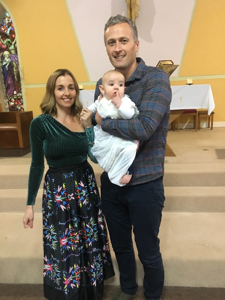 Previous Image Next Image 4C8ACB96-A579-47CE-94FB-0C7AAB4EF82D Evan Michael O’Sullivan with his parents on his baptism day.