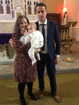 Previous Image 5C00259E-0C6F-4B6A-BD23-453B3AE9A8B4 Chloe Mae McMahon with her parents Enda and Deirdre on her baptism day.