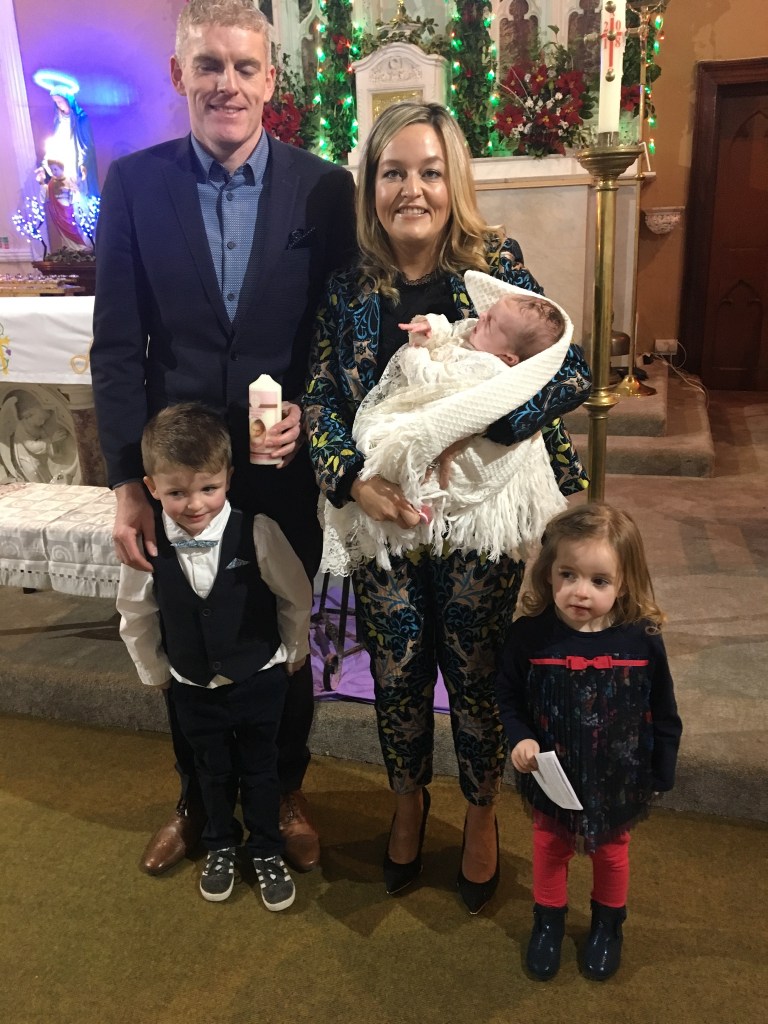 Next Image c90f0fd4-bf48-43c0-b6bf-5cb75da5ed8b Seóda with her parents, brother snd sister on her bsptism day.