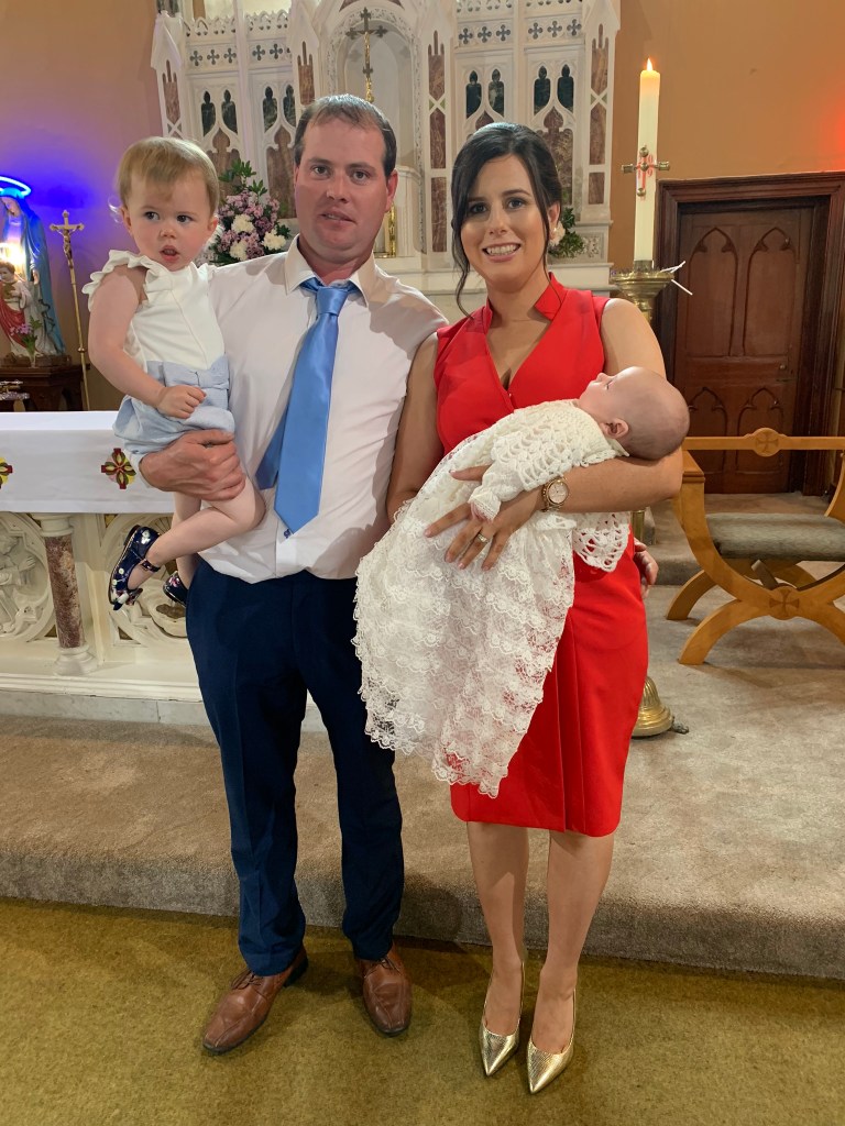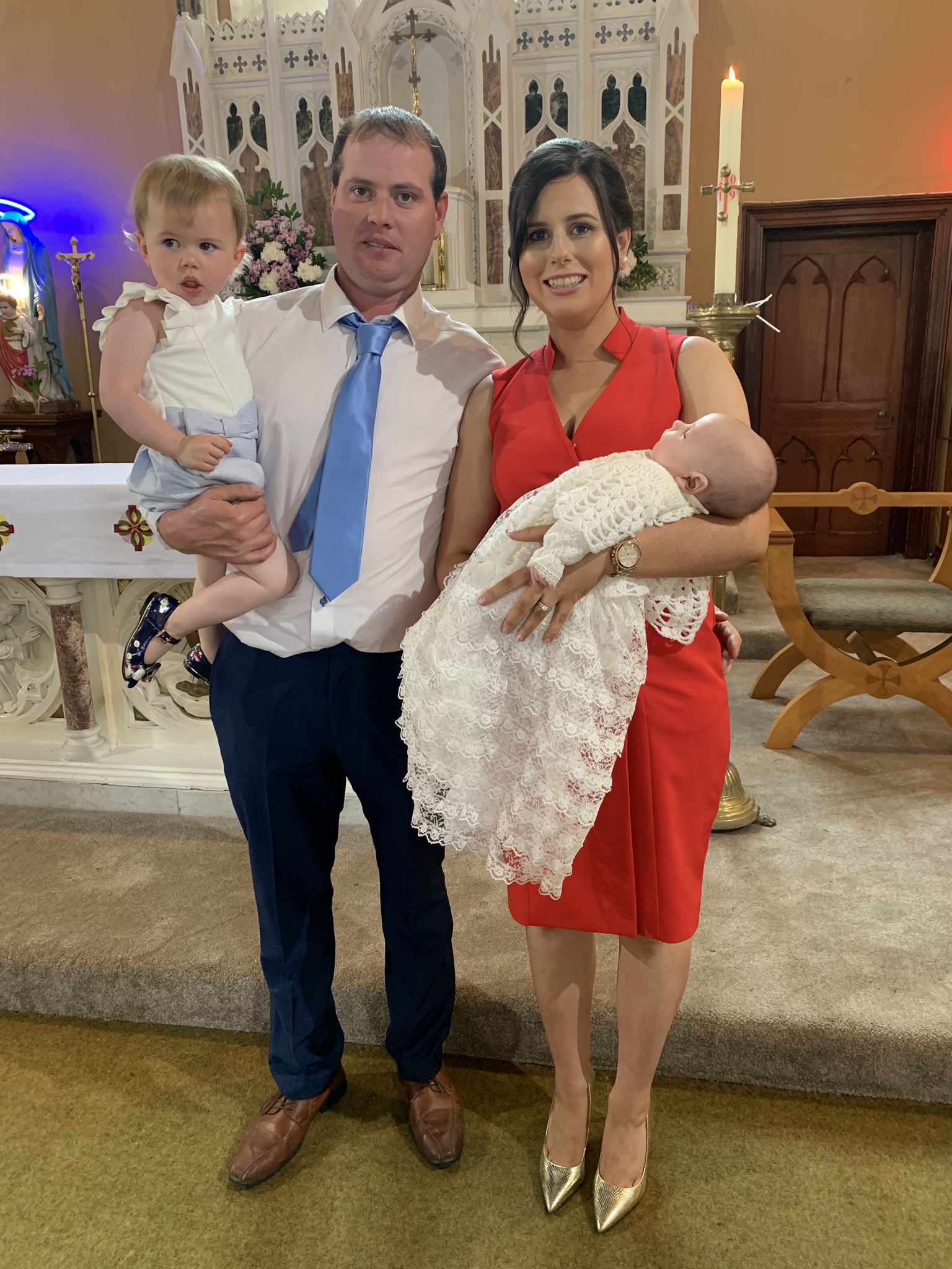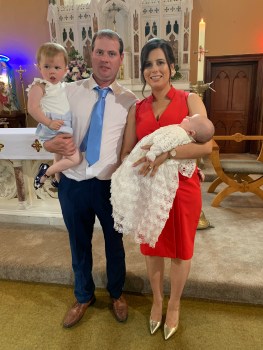 Previous Image Next Image EE10816F-8442-4349-B4F2-B384C4E0DEF3 Oran on his baptism day with his parents Fiona and Patrick and his sister zLeah.