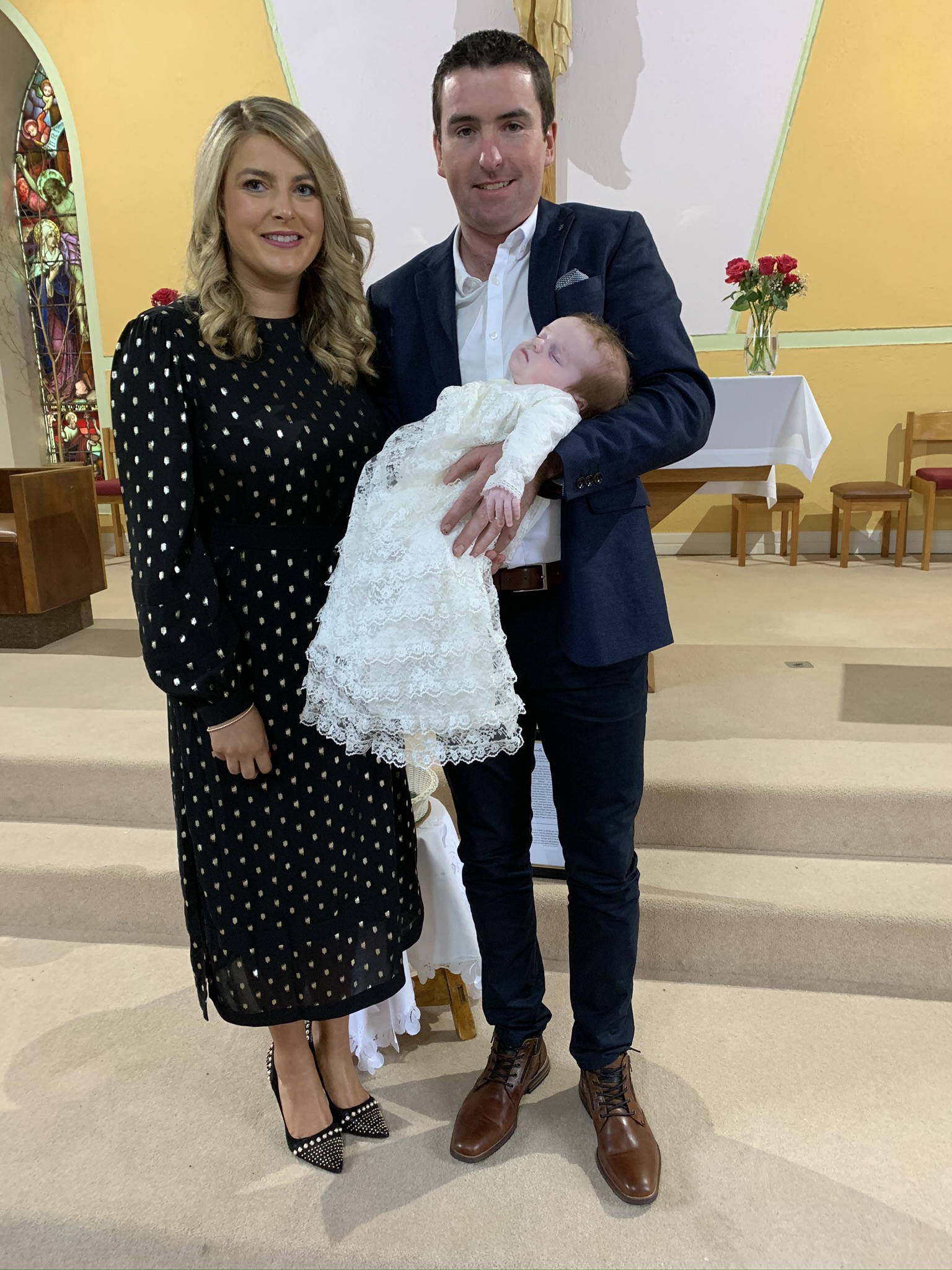 Cian McMahon with his parents on his baptism day.