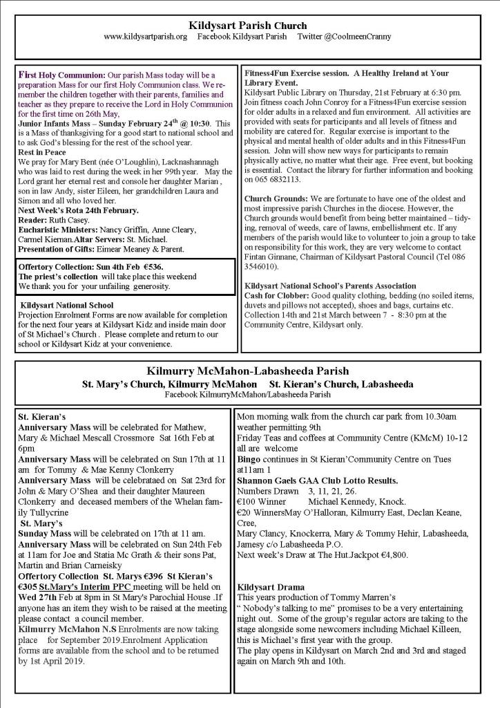 The website of Coolmeen-Cranny Parish, Co Clare.