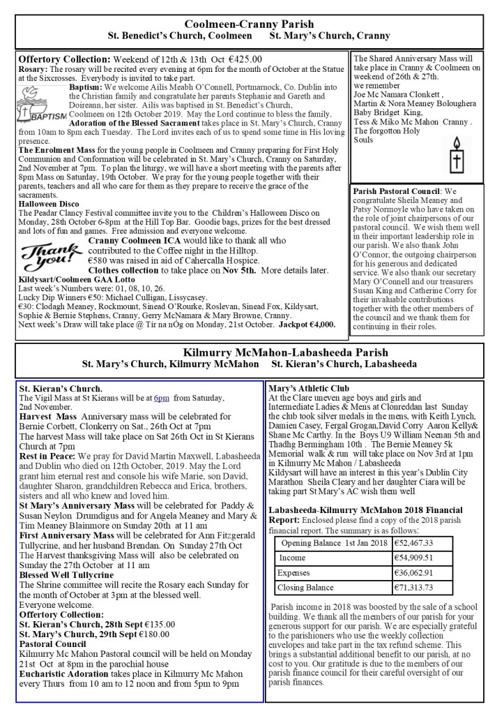The website of Coolmeen-Cranny Parish, Co Clare.
