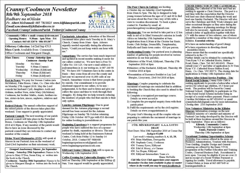 The website of Coolmeen-Cranny Parish, Co Clare.