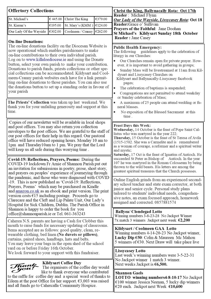 The website of Coolmeen-Cranny Parish, Co Clare.