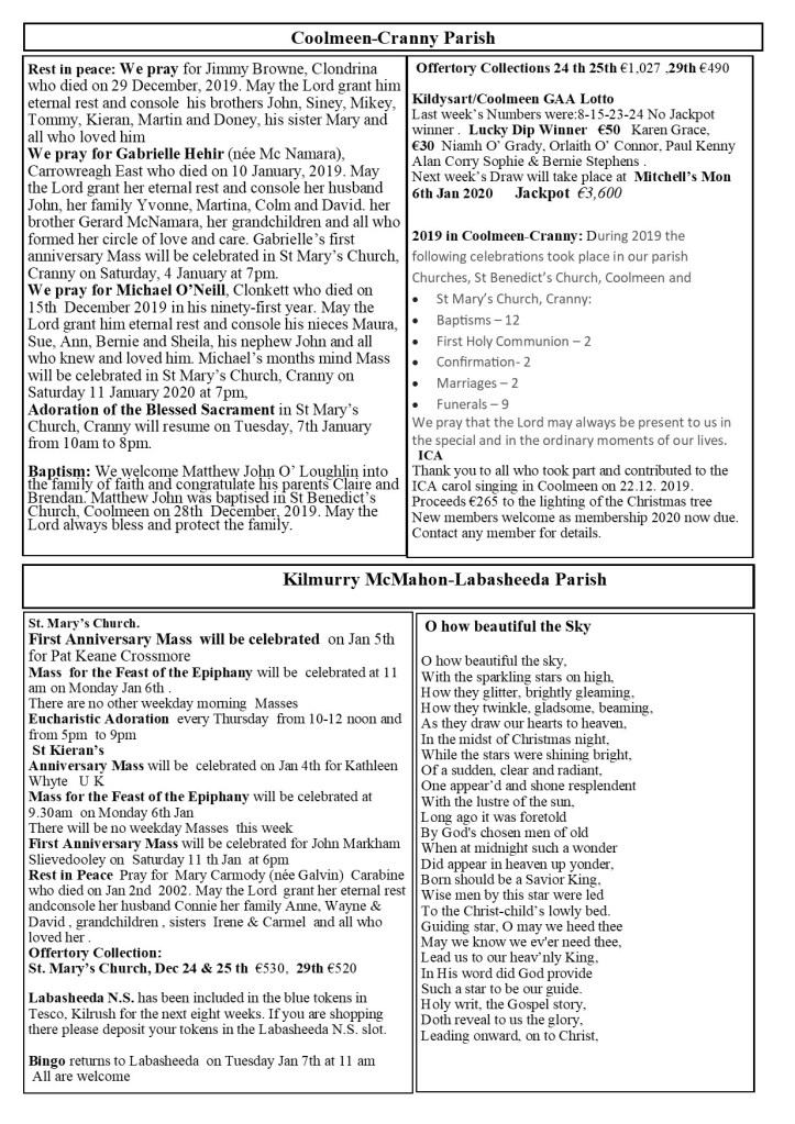The website of Coolmeen-Cranny Parish, Co Clare.