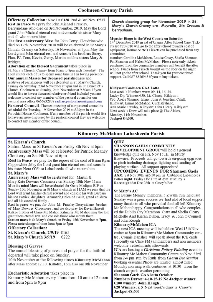The website of Coolmeen-Cranny Parish, Co Clare.