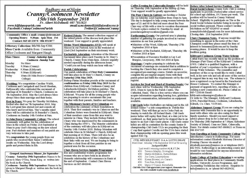The website of Coolmeen-Cranny Parish, Co Clare.