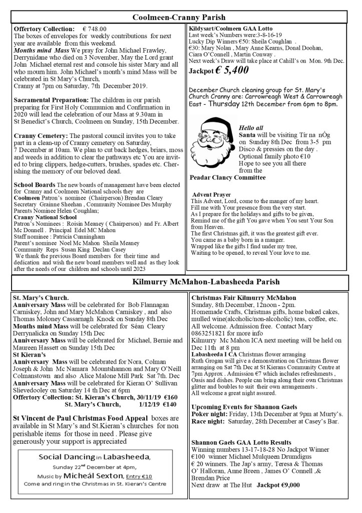 The website of Coolmeen-Cranny Parish, Co Clare.