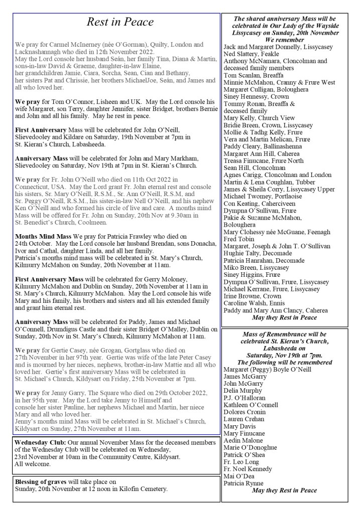 The website of Coolmeen-Cranny Parish, Co Clare.